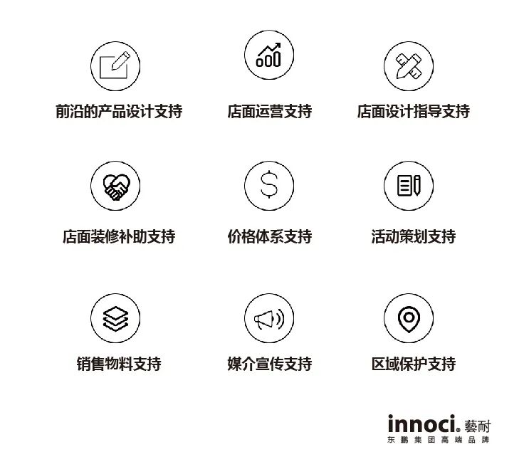 厂商共赢是艺耐一直坚持的最有效的合作理念,我们承诺从客户建店到持续经营,提供九大加盟支持: