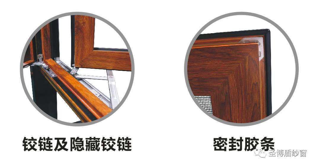 6、纱窗设计:防盗纱窗,具有防盗功能。如圣博盾的断桥窗纱一体系列,采用奥氏不锈钢Aisi304 材质金刚纱网制作纱窗一体平开窗,除了纱窗质量稳定,还能有效防止纱窗生锈,不但具有防蚁虫通风等功能外,还能起到防盗作用。